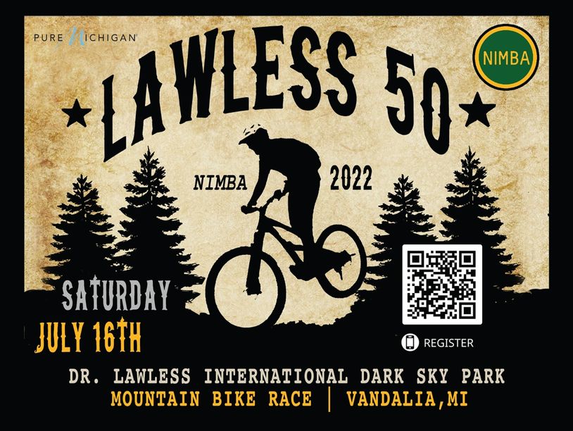 The namesake 60-mile Lawless is one of the Midwest's premier endurance mountain bike races and is among the most challenging in the region. Racers will do three laps of mostly singletrack, and some doubletrack trails, climbing a near-total 4000 feet of elevation gain throughout the race.