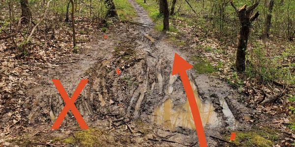 Trails need time to dry out. Please wait a day or more depending on how much moisture is on the trail. Simple etiquette for how to handle an unexpectedly muddy spot in the trail - RIDE THROUGH IT, NOT AROUND IT. And if you are worried about getting mud on your clothes, we suggest having your mom do your laundry.